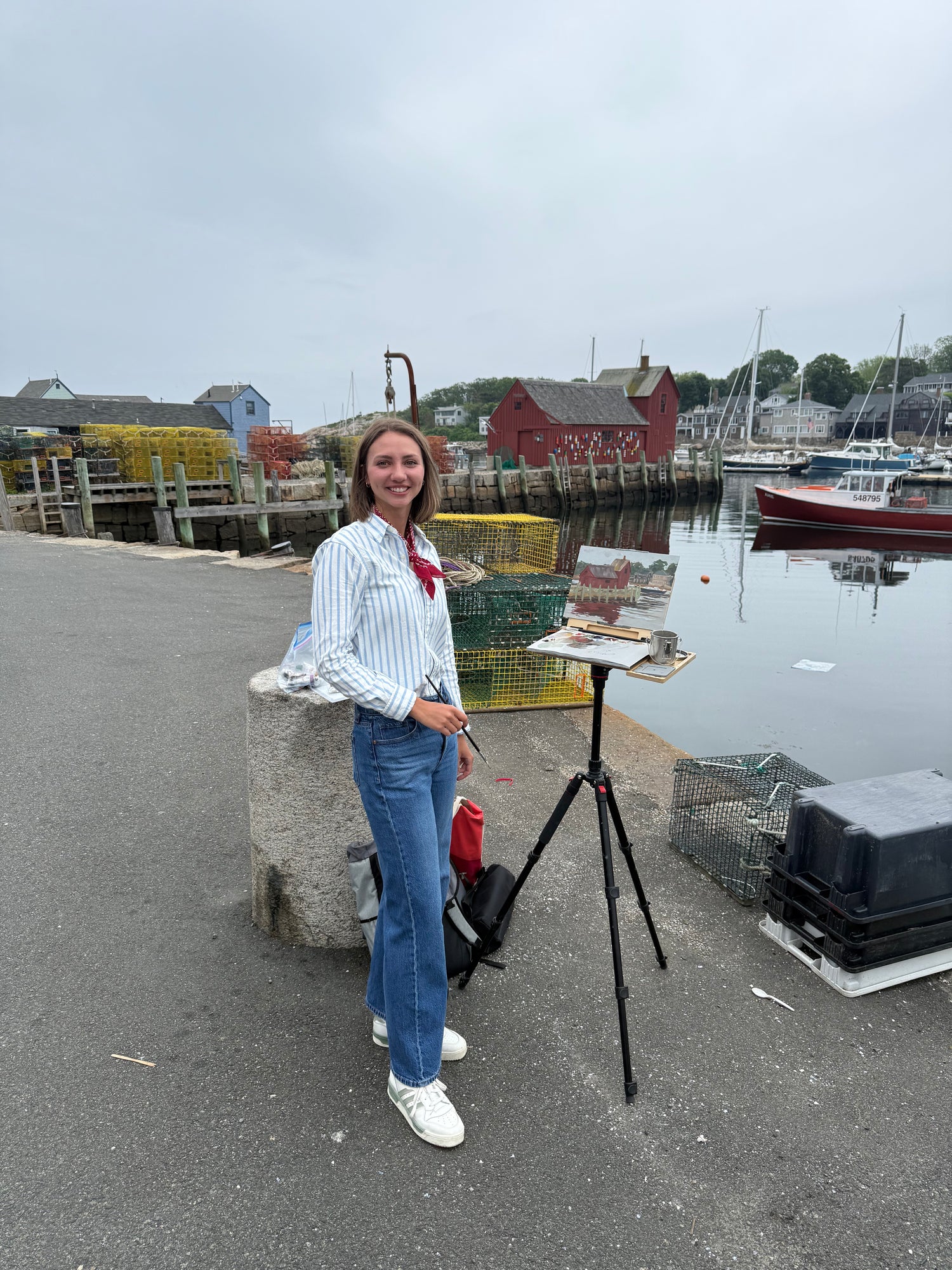Ella Jane Niederhauser is an American oil painter with a love of painting seascapes and sailboats. The more patriotic the better. Ella works mostly outside on the go from real life. She loves painting places that are familiar to her and capturing the fleeting light and essence of being there. This is achieved by her ability to paint quickly and variety of loose brush strokes.